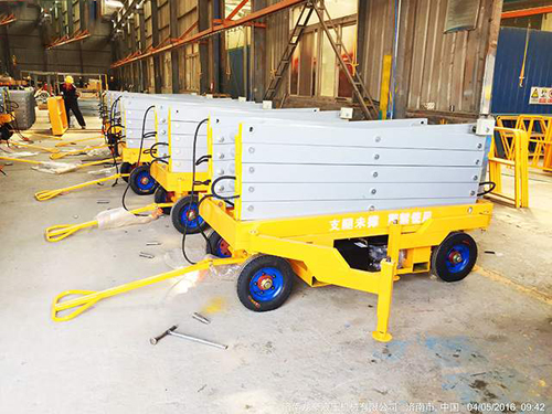 濟南金創(chuàng)移動剪叉液壓升降機成品車間,時時有現(xiàn)貨供應(yīng)